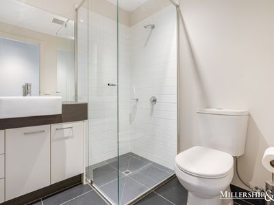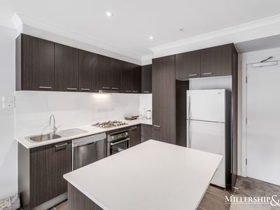 With a light filled and open plan design this boutique apartment is comprised with two bedrooms all with built in robes. The master bedroom is equipped with the modern en-suite and an additional family bathroom that is generous in size. Offering a fully equipped kitchen boasting stone benchtops, breakfast bar and quality appliances including dishwasher and ample cupboard space overlooking the living area which leads out to a private balcony. Other features include split system heating and cooling, European laundry, secured basement carpark, intercom and storage unit.
