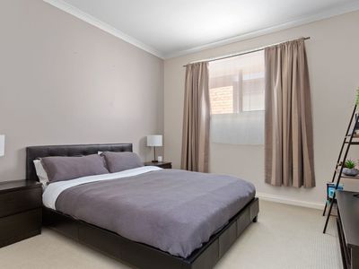 Outside, the low-maintenance backyard offers a private sanctuary for outdoor relaxation and entertainment. The double garage provides secure parking for two vehicles, with additional off-street parking available.