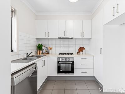 Facing the local ‘village-green’ and featuring a spacious open plan living and dining zone, the property also features modern kitchen with stone benchtops and quality appliances, 2 generously sized bedrooms (both with walk-in robes) plus a central bathroom. To the rear of the property, we have secure undercover parking and the child/pet friendly private courtyard.