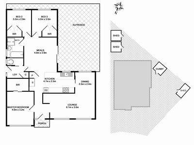 • Fenced rear yard with sheds